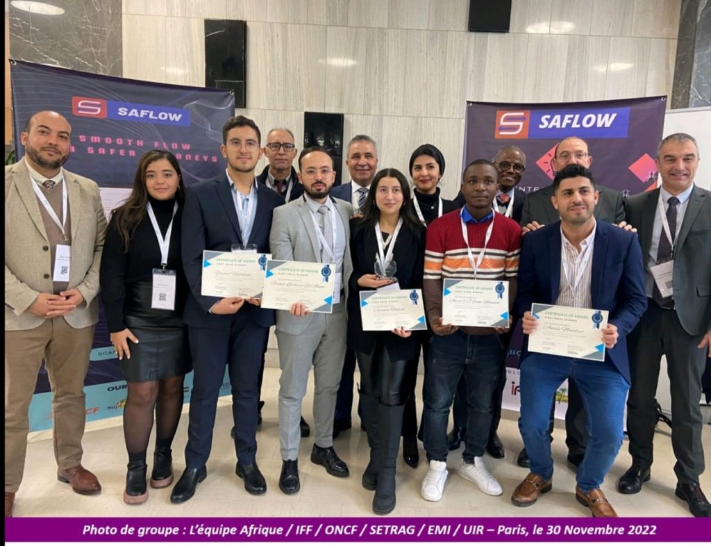 Une finale qui opposait sept équipes en provenance d’Afrique, d’Europe, d’Asie Pacifique et du Moyen orient, qui s’est déroulée le 29 novembre au siège de l’UIC à Paris. Le thème de leur projet vainqueur : SAFLOW « RESILIENT PASSENGERS FLOW MANAGEMENT SYSTEM TO COMBAT FUTURE PANDEMICS » a été présenté devant un jury d’experts du domaine ferroviaire.