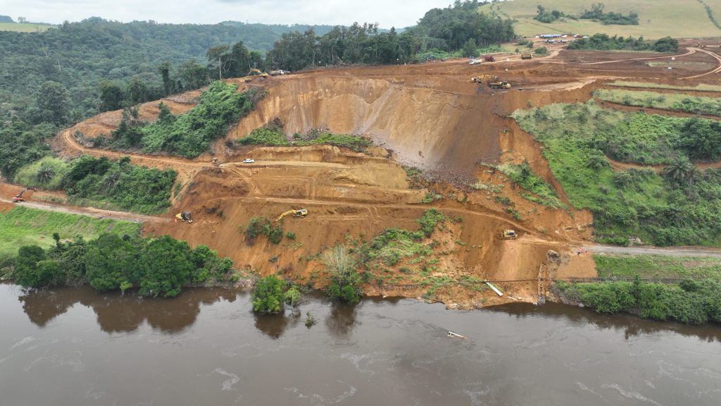 Environ 300 000 m3 de terre ont déjà été évacués. Le chantier est réalisé par Setrag ainsi que par Comilog sous la supervision de l’Etat gabonais. Un travail colossal a été engagé, mobilisant une vingtaine d’engins et plus de 150 agents pour déblayer le terrain et reconstruire la portion de voie affectée.