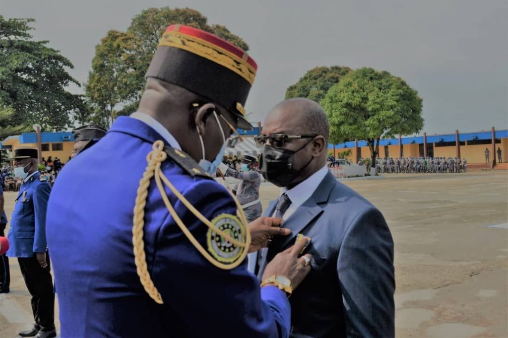 Le 02 juillet dernier, l’École Nationale de la Gendarmerie (ENG) a célébré la consécration de la 18e cuvée des élèves officiers de la gendarmerie nationale. Occasion pour ce corps d’élite de procéder à la remise de plusieurs médailles dont celle relative à la politique de responsabilité sociétale décernée au Directeur général de la Société d’exploitation du Transgabonaise (Setrag) Christian Magni des mains du Commandant en chef de la gendarmerie nationale, Yves Barrassouaga.